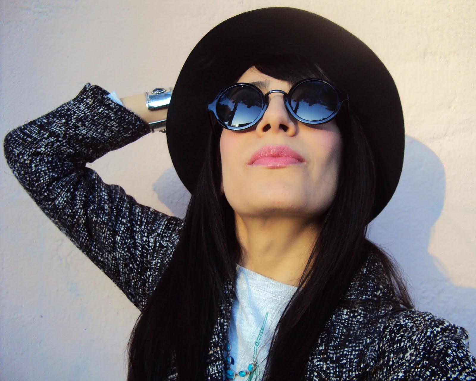 Black Hat: Pimkie / Shirt: “Only the Top” Zara / Coat: Tally Weijl / Indie Sunnies: Pimkie / Jeans: Pimkie / Shoes: Pimkie Bangle: Pimkie / Nailpolish: N 529 Kiko